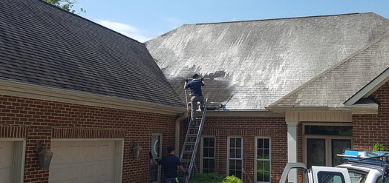 Roof cleaning with our non pressure soft wash system. Removes algae (black streaks), moss, lichen and debris. All roof types.